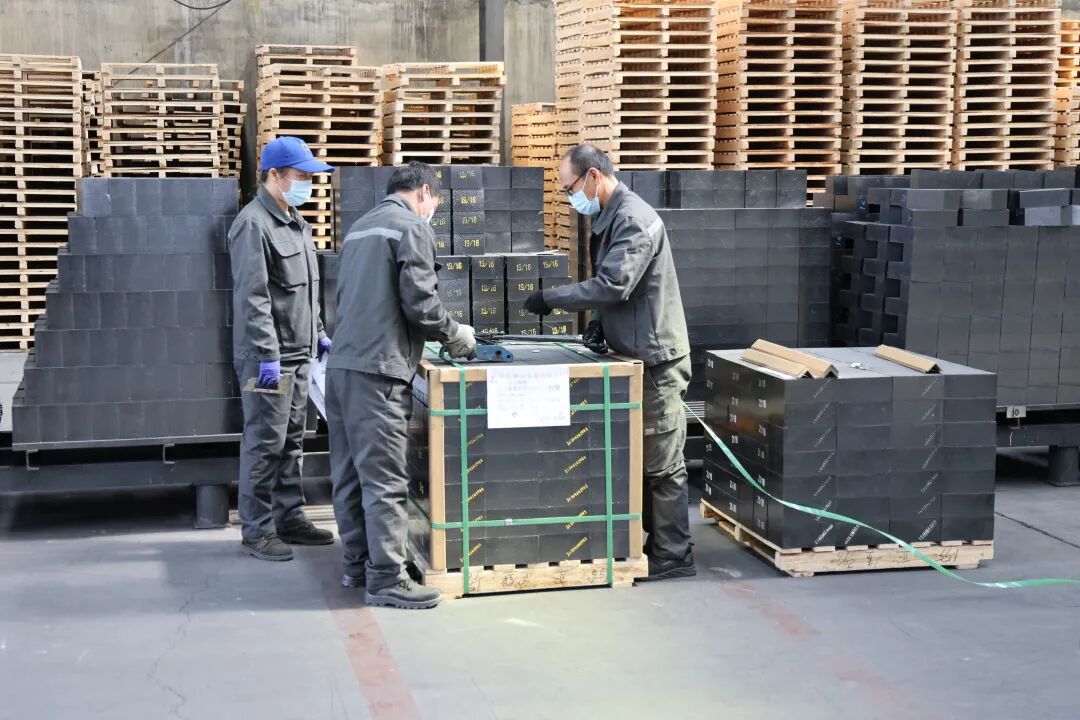 3月17日,中民驰远实业有限公司制砖厂成品车间职工正在包装检选镁碳砖(如图)。2024年初以来,该公司通过加强技术创新能力、提升质量控制水平、完善售后服务流程等工作,受到了众多客户好评。该公司用在精炼钢包的耐材产品取得了包龄突破200炉的成绩。